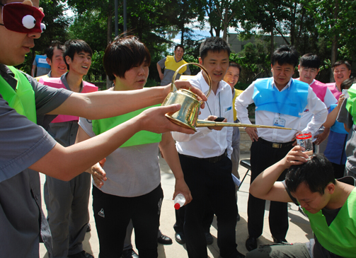 本次活動(dòng)以團(tuán)體賽形式進(jìn)行,設(shè)有“指壓板托球往返跑”、“提壺灌頂”、“帶帽吃糖”、“衣架穿身”等趣味競(jìng)技項(xiàng)目。部門(mén)經(jīng)理分別擔(dān)任各隊(duì)隊(duì)長(zhǎng)。比賽前,各隊(duì)隊(duì)長(zhǎng)通過(guò)隨機(jī)抽簽的方式確定隊(duì)員,團(tuán)隊(duì)協(xié)作完成趣味競(jìng)技項(xiàng)目并通過(guò)尋找“寶藏”或撕掉對(duì)方名牌獲取“核心力量”(格瑞物業(yè)公司十字方針),最終以找到最多的隊(duì)伍勝出。