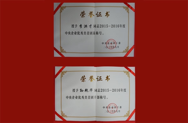 根據(jù)中央企業(yè)共青團評選表彰有關制度,中央企業(yè)團工委研究決定:授予李洪才2015-2016年度“中央企業(yè)優(yōu)秀共青團員”榮譽稱號;授予孫艷華2015-2016年度“中央企業(yè)優(yōu)秀共青團干部”榮譽稱號。