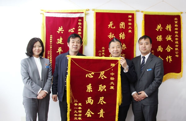 3月14日,造紙院所屬格瑞物業(yè)公司收到北京昆泰酒店“盡職盡責 心系兩會”的感謝錦旗,酒店對于公司積極配合安保工作、圓滿完成保障任務表示衷心的感謝。