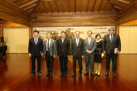 集團公司董事會辦公室主任王偉、戰(zhàn)略投資中心副主任於驍東等有關人員參加會見。